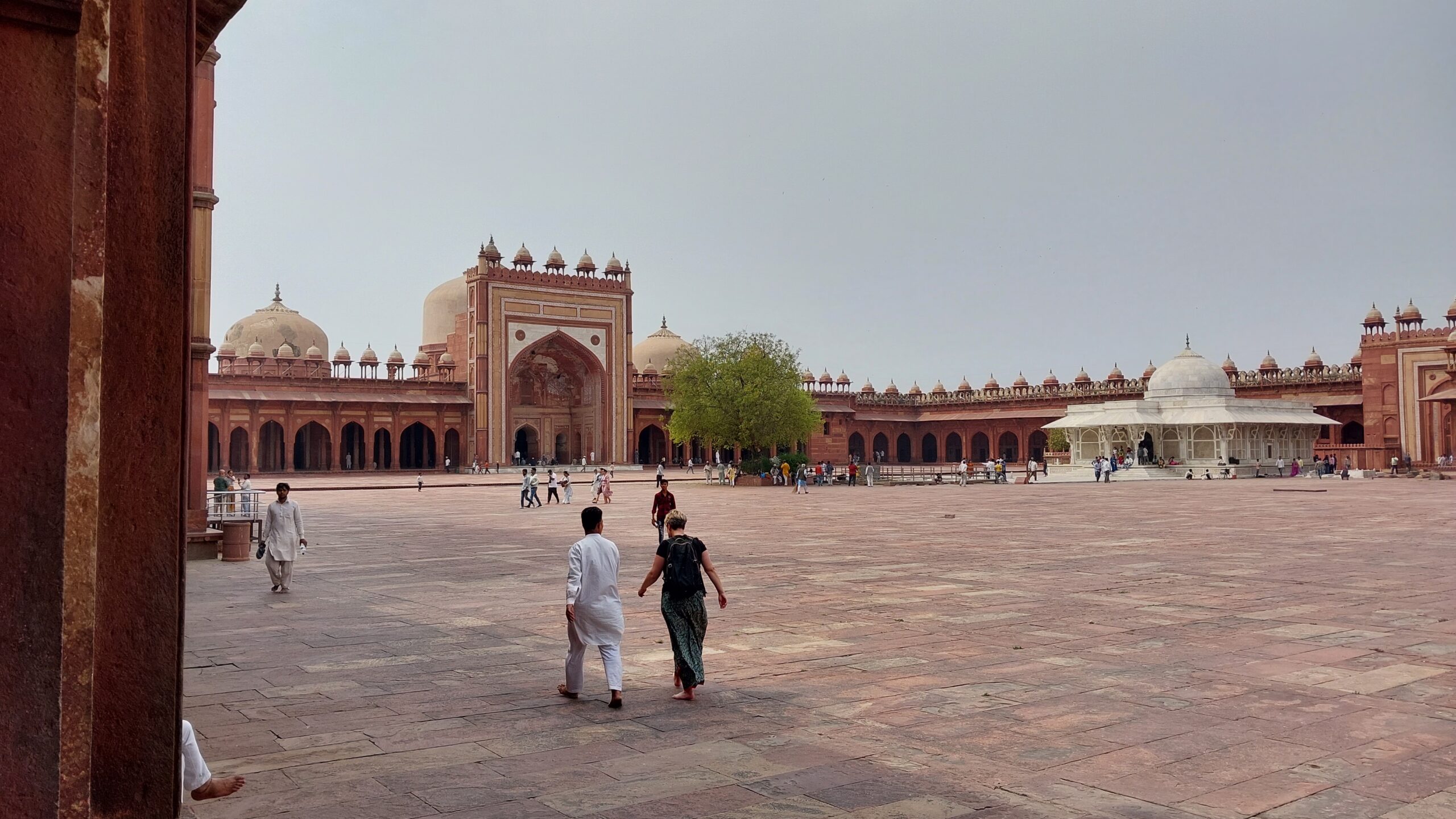 En franchissant le porche de Fathepur Sikri, je fus saisi d’une profonde émotion, un peu comme quand on rentre à la maison après un long voyage. Pourtant, je ne me souvenais pas de tout, et aussi parce que de nombreux aménagements avaient été réalisés, mais quand même, la belle couleur rouge du grès du Rajastan me ramenait des souvenirs profonds et heureux.