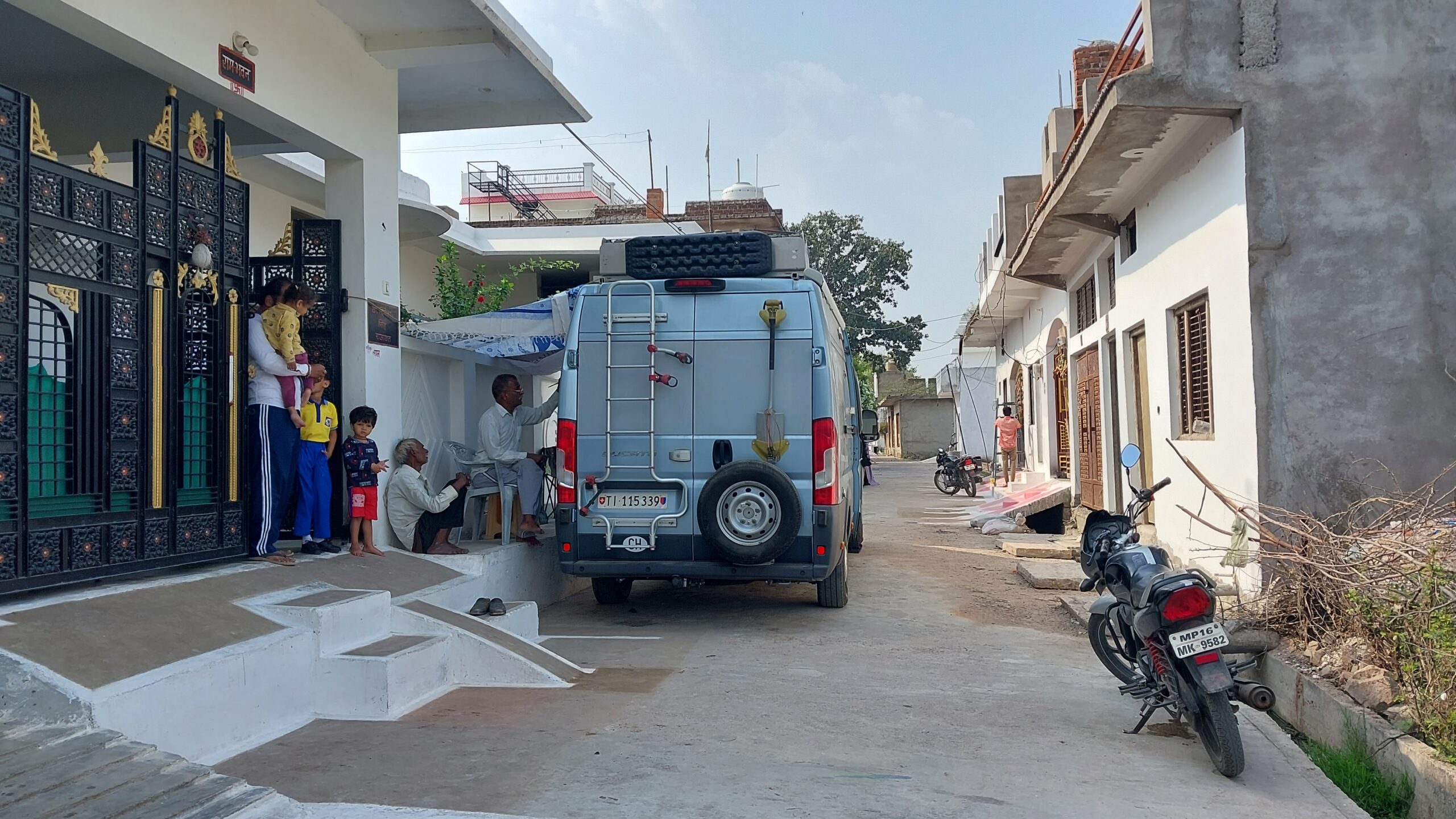 Plus tard, dans le trafic et l’agitation de la petite ville de Khajuraho que j’ai maintenant rejointe, alors que je cherche une place pour me garer, je suis hélé par une grande gigue sur un vélo minuscule, le visage mangé par un sourire immense, qui s’exprime dans une mélodie graveleuse d’outre Sarine«Suchsh d’ ’n Platz ?». Un Thurgovien arrivé peu avant a repéré un lieu à l’aide d’une application pour mobile, un endroit plutôt plaisant au bord d’un grand bassin intérieur, légèrement excentré.
