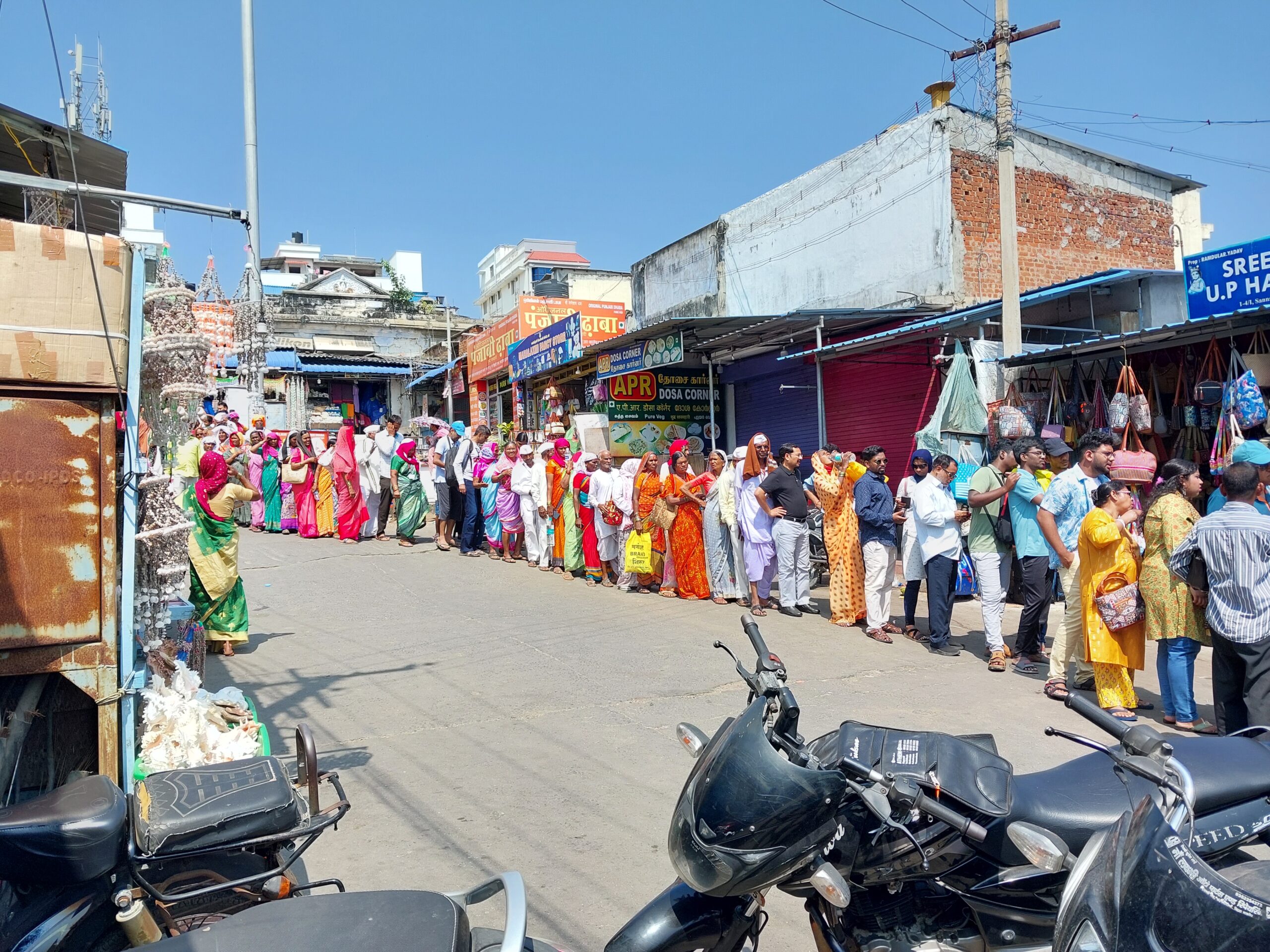 Je regarde ces représentations improbables sans voix, dans ces espaces vivants ou les uns prient, attendant dans la dévotion pour rejoindre la queue qui avance entre les barrières, alors que d’autres, assis à même le sol, mangent, prient et aiment. Le contraste est saisissant avec nos églises vides, même celle de Pondicherry, sinon quelques rares fidèles silencieux recueillis dans l’attente d’un service funèbre. .