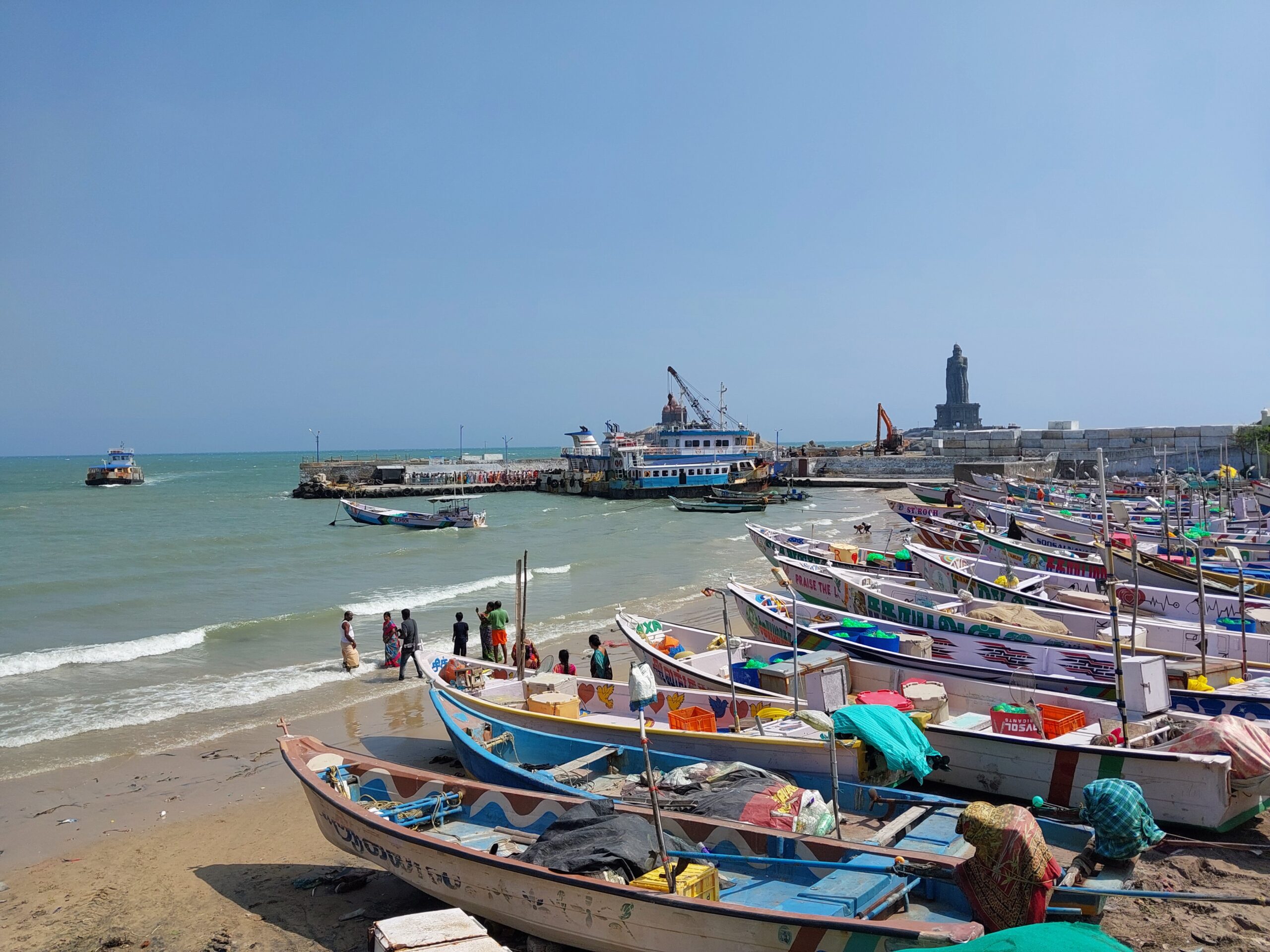 Kânyâkumâri, le cap Comorin, la pointe extrême sud de l’Inde marque la jonction de trois mers, le Golfe du Bengale, l’Océan indien et la mer d’Arabie. Là, face au sud, il n’y a plus que le ciel et l’eau, à l’infini.