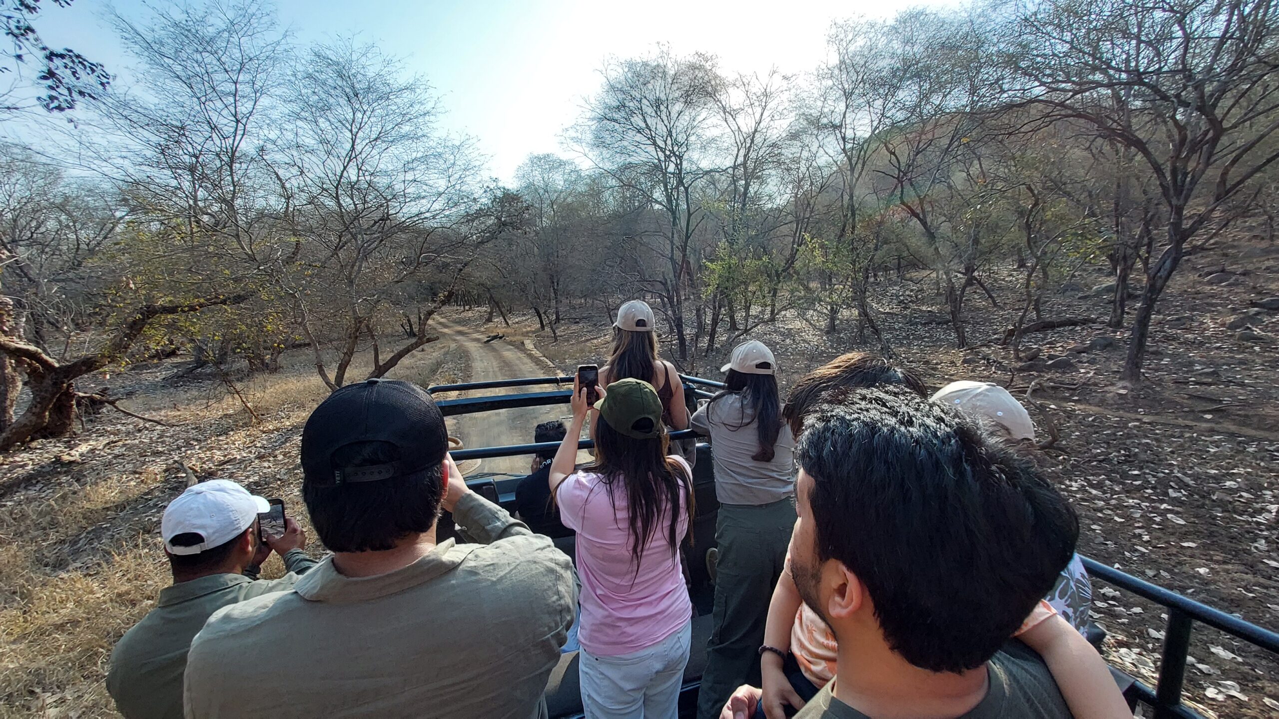 Je trouvai finalement sur le web à acquérir un billet pour un safari dans le parc. C’est quand même plus facile de tapoter un peu sur son téléphone, sans se prendre le chou au soleil, et hop on reçoit le lieu et l’heure, avec un lien utile pour le GPS. Ainsi, à l’heure dite, à six heures vingt le matin, après avoir enjambé le portail fermé de mon hôte, couru et fait un peu de stop nocturne pour y parvenir, je fus à l’endroit convenu. Seul. Le chauffeur qui m’avait pris en stop, un pilote de Jeep du parc, avait douté de l’endroit, mais sous mon insistance déterminée, m’avait déposé là. Pas de problème avait-il ajouté, je fais le plein et reviens, je verrai bien ce que vous devenez. Veni, vidi, vici (lui). Effectivement, sans lui j’y serais encore, enfin, non, certainement pas, mais mon humeur serait à un niveau très différent de ce qu’elle atteignit ce jour-là. Il me ramena donc à l’endroit idoine, Shilpgram que j’avais fui le jour précédent et que j’allais devoir affronter cette fois jusqu’au bout. En fait, sur Internet, le vendeur m’avait vendu une prestation qu’il allait devoir organiser, aller faire la queue au poulailler, se battre contre le sort, contre ses confrères, contre cette foutue lourdeur administrative indienne, écrire une demande d’autorisation sur papier rose, attendre que le management du parc ait donné l’aval à l’office et obtenu le nom du chauffeur, le numéro du véhicule, le tout lié au nom du client, puis établir le billet définitif. Rien à voir avec la carte Postomat glissée dans l’appareil à la gare et en deux ou trois clics, le billet sort, «Merci d’avoir choisi les CFF, bon voyage et à la prochaine !». Ici c’est l’Inde, on aime le papier, la redondance, l’agitation, les interjections, les amas humains, les vociférations, les itérations, les multiples approbations, celle du superintendant, de l’intendant, du sous-intendant, du guichetier, après celle de la sécurité s’entend. Alors, il n’est pas impossible que ma demande soit arrivée d’un «beep» impersonnel à une heure défavorable, d’où mon immense solitude matinale, effacée ultérieurement par la spontanéité de ce chauffeur providentiel. Me voyant me faire piétiner, bousculer, ignorer, déborder par la furie des chauffeurs en attente des fameux billets pour leurs clients, généreusement l’un d’entre eux me servit de guide administratif, m’expliquant qu’à autre culture et éducation, autre processus et comportements aussi. Il parlementa, paya avec sa carte indienne là où ni ma mastercard, ni mon cash ne pouvaient opérer et m’expliqua que l’administration du parc n’avait aucune demande à mon nom et qu’il me faudrait traiter ultérieurement ce problème avec mon vendeur. Une heure plus tard j’entrai en camion dans le parc en compagnie d’une douzaine d’autres visiteurs.