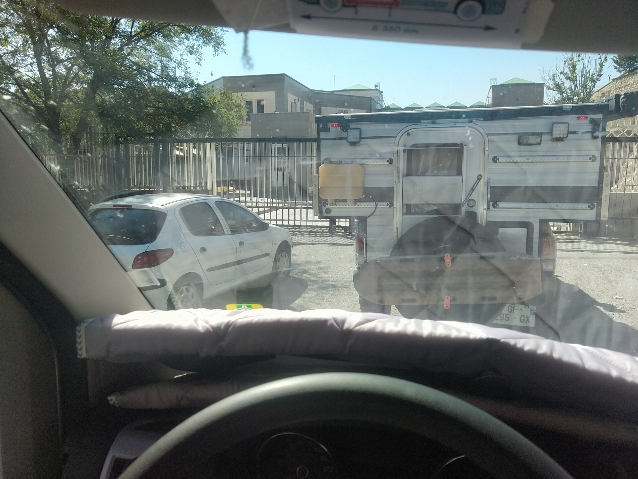 Gurbülak frontière turco-iranienne. Après de rapides formalités côté turc, l’attente derrière les portails fermés commence. Devant moi se trouve un gros 4×4 Toyota équipé d’une cellule et orné de plaques françaises ; Pascal et Pascale sont en route pour deux mois en Iran. Lentement, la grille turque glisse dans un grincement de roulements rouillés, alors que celle de l’Iran reste désespérément fermée. On attend. On attend alors que le soleil lentement gomme les ombres, chauffe les tôles et les esprits. Enfin, la grille iranienne s’ébranle à son tour et nous libère un passage.