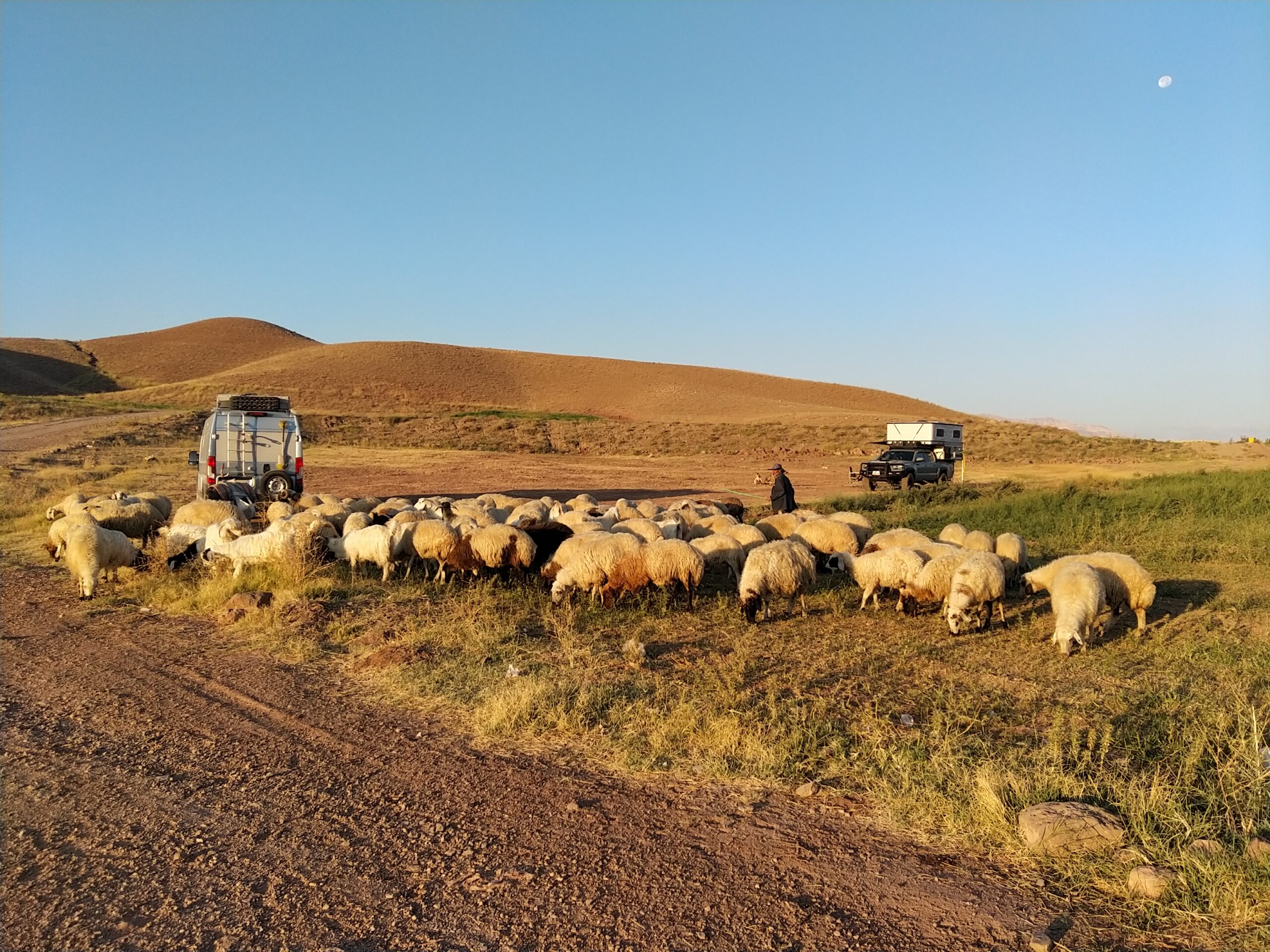 A l’entrée de Tabriz, je suis Pascal au plus près. Dans cette circulation rapide, dense et instable, dans cet enchevêtrement de présélections, d’embranchements, les conducteurs locaux et les motards se faufilent, forcent le passage, sautent d’une voie à l’autre, doublent par tous les côtés, font des écarts pour éviter des véhicules arrêtés sur la voie de droite ou des vendeurs de rue qui s’avancent. Ça va un peu trop vite à mon goût. L’hôtel des Pascal(e) est attenant à un grand centre commercial ; je logerai dans le vaste parking délaissé la nuit. L’habitude locale veut que la journée ces commerces soient peu fréquentés, probablement parce que les gens sont occupés ailleurs, par contre, en fin de journée les véhicules affluent et les familles investissent le centre jusque vers minuit.