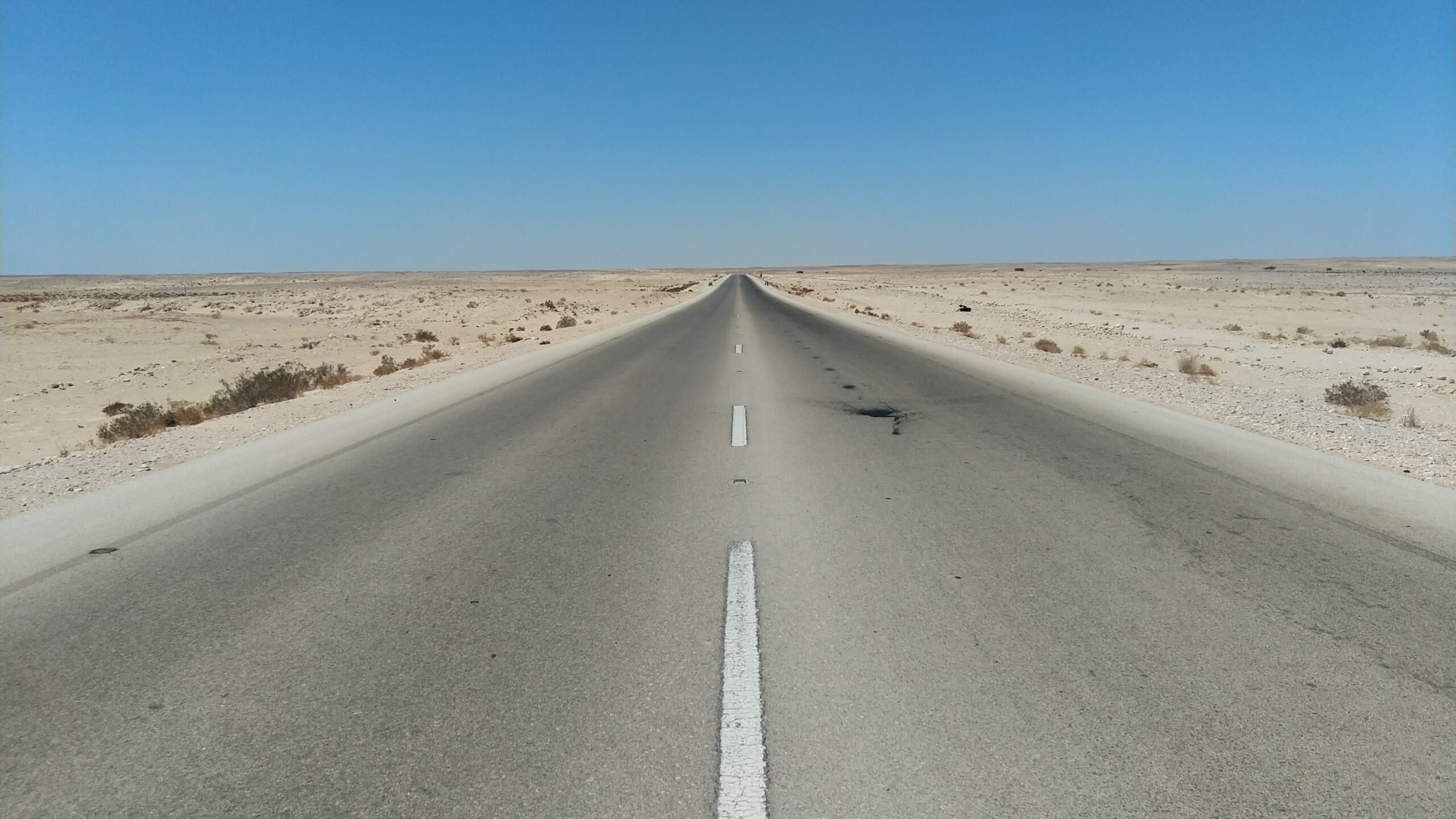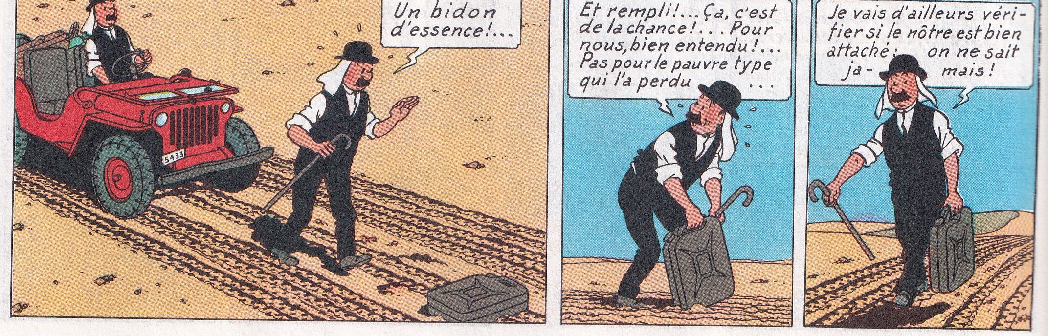Passé Haima, la jauge de carburant est encore confortable et bien que les stations soient très distantes je décide de ne faire le plein qu’à la suivante. J’y renoncerai cependant, celle-ci étant située sur le mauvais côté de la chaussée, séparée par une berme infranchissable, forçant à un détour de plusieurs kilomètres jusqu’à un passage surélevé, ce sera donc la suivante. Ainsi de suite, sur plus de deux cent kilomètres, me refusant à un détour jugé inopportun, je jouais à repousser un ravitaillement devenant de plus en plus nécessaire, observant d’un œil interrogateur l’aiguille descendante. Cette jauge, que je veillais toujours à tenir dans la moitié supérieur du cadran, butait contre le clou depuis un moment déjà, me mettant au défit de trouver rapidement, ou de marcher rapidement dans le désert pour trouver. Certes, je ne retrouvais pas dans le sable le jerrican perdu par les Dupond, Dupont au Pays de l’Or noir, mais plus prosaïquement, Shell que j’aime particulièrement dans ces moments là, m’annonçait sa présence bienveillante un peu plus loin !