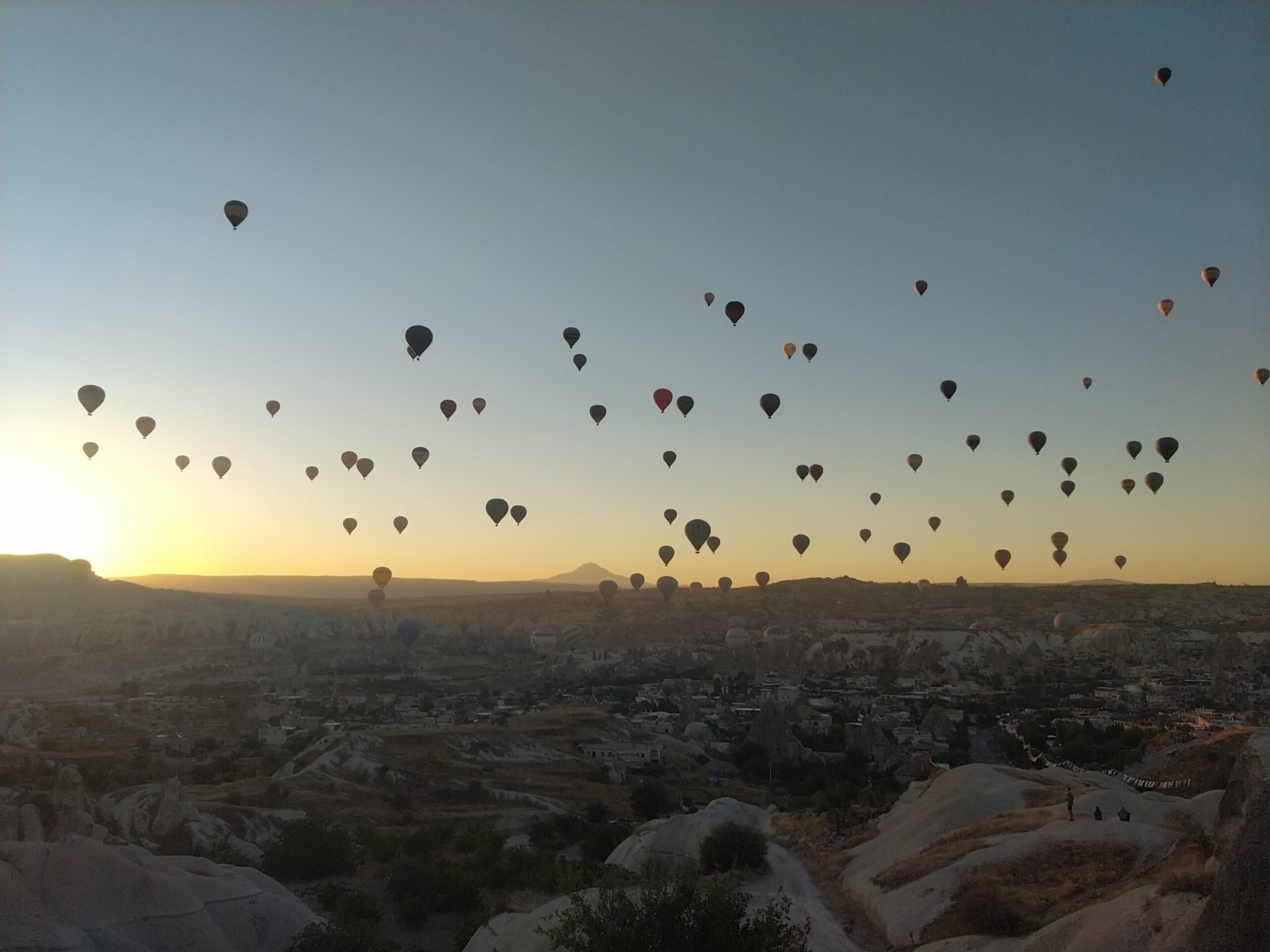 A chaque passage en Turquie, nous faisions un passage en Cappadoce, en particulier à Göreme, qui est le nombril de cette région spectaculaire. A notre première venue, au retour d’Inde, nous nous étions arrêtés par hasard chez Ali, par le fait qu’un petit parking jouxtait sa belle terrasse naturelle et isolée. Ali avait choisi cet endroit pour installer un petit débit de boissons dans une large et haute caverne. Les rares cars qui arrivaient lâchaient leur contenu de touristes pour quelques minutes, certains partant à la recherche de la petite église Sakli Kilise proche, d’autres lui préférant un instant de relâchement à siroter un thé ou un cola. Quinze minutes plus tard, le parking était déserté, le car et ses touristes repartis, la quiétude absolue retombait alors sur l’endroit. Nous avions aimé l’esprit du lieu, son ambiance étrange que forment les ombres quand le soleil descend en fin de journée dans le décor des roches découpées, et le calme et la gentillesse de notre hôte. Ali avait sans doute apprécié la présence de notre petit groupe hétéroclite, notre mode de voyage, notre énergie et nos humeurs et nous avions sympathisé autour d’un guveç, comme les romands sympathisent autour d’une fondue. Le caquelon du guveç est un simple plat de terre cuite profond, dans lequel on laisse mijoter dans les braises un émincé de bœuf et d’agneau avec tomates, poivrons, ail, herbes odorantes et huile d’olive. C’est une merveille pure, un délice pour les sens, l’odorat est excité par le fumet subtil alors que la vision et l’ouïe détectent le bouillonnement des sucs et la variation des couleurs. Au toucher de la langue et du palais, bon dieu que c’est chaud, et les saveurs inoubliables, du met, de l’amitié, du moment. Guveç, le bonheur est dans le plat !