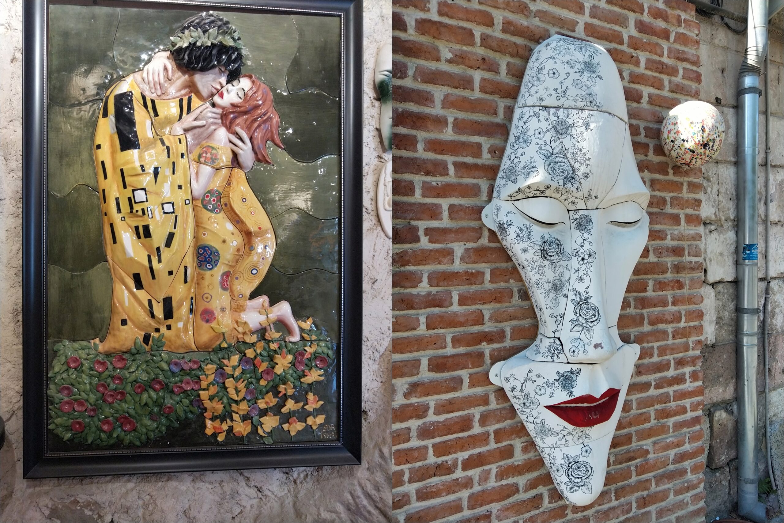 Avanos est réputé pour ses céramiques, en particulier pour les articles en terre rouge qui provient de la région. D’autres terres y sont aussi façonnées et envoyées à peindre dans des villes proches. J’aime la céramique et je suis donc entré dans quelques boutiques-ateliers où j’ai offert le thé à un jeune vendeur, un franco-turc revenu au pays, un peu désœuvré. J’ai pris plaisir à cette inversion des rôles. Dans une autre boutique j’ai adoré, et j’y aurais volontiers laissé quelques liasses si je n’avais pas été dans ce sens de mon voyage, la superbe production d’un jeune couple céramiste inspiré. Alors que tous les potiers de la région font des vases, des assiettes et des carreaux, eux ont choisi de ne faire que des pièces hors de cette tradition locale. Le baiser de Klimt reproduit en puzzle céramique est incroyable et le visage de Moaï sur la façade, avec une multitude de reprises dans des formats plus abordables, est irrésistible. Je ne mentionne pas les vases soliflores sensuels et tout ce que mon regard n’a fait qu’effleurer, attiré qu’il était par les pièces les plus saillantes, inhabituelles et surprenantes. Ça m’a sauvé des visites de cavernes dans la foule et de l’effet de la chaleur suffocante.